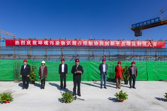 伴随着最后一方混凝土浇筑到位,环境污染物识别与控制协同创新平台项目喜封金顶。仪式结束后,各位领导深入现场仔细查看了项目主体结构,对下一步工作做进一步部署规划。