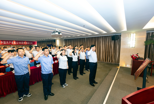 上午9时,伴随着雄壮的《义勇军进行曲》,活动拉开序幕。集团公司党委书记、董事长陈先瑞带领全体党员,面对鲜红的党旗,重温入党誓词,庄严宣誓,表达对党的无比崇敬和无限忠诚。
