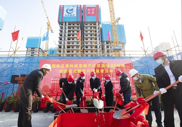 12月22日,伴随着最后一方混凝土浇筑到位,在项目建设、监理、设计等相关单位负责人及集团公司领导的共同见证下,米兰网页版承建的菜园街及枣林南里棚户区改造项目喜迎主体结构封顶。